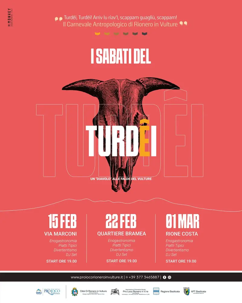 Il carnevale a Rionero in Vulture porta un appuntamento che piace a molti: i “sabati del Turdêi”. Tre serate – 15 e 22 febbraio, 1° marzo – all’insegna dell’enogastronomia, della musica e dello spettacolo animeranno diverse zone della città, preparando il terreno per il gran finale del Carnevale. Per la precisione: 15 febbraio a via Marconi; […]