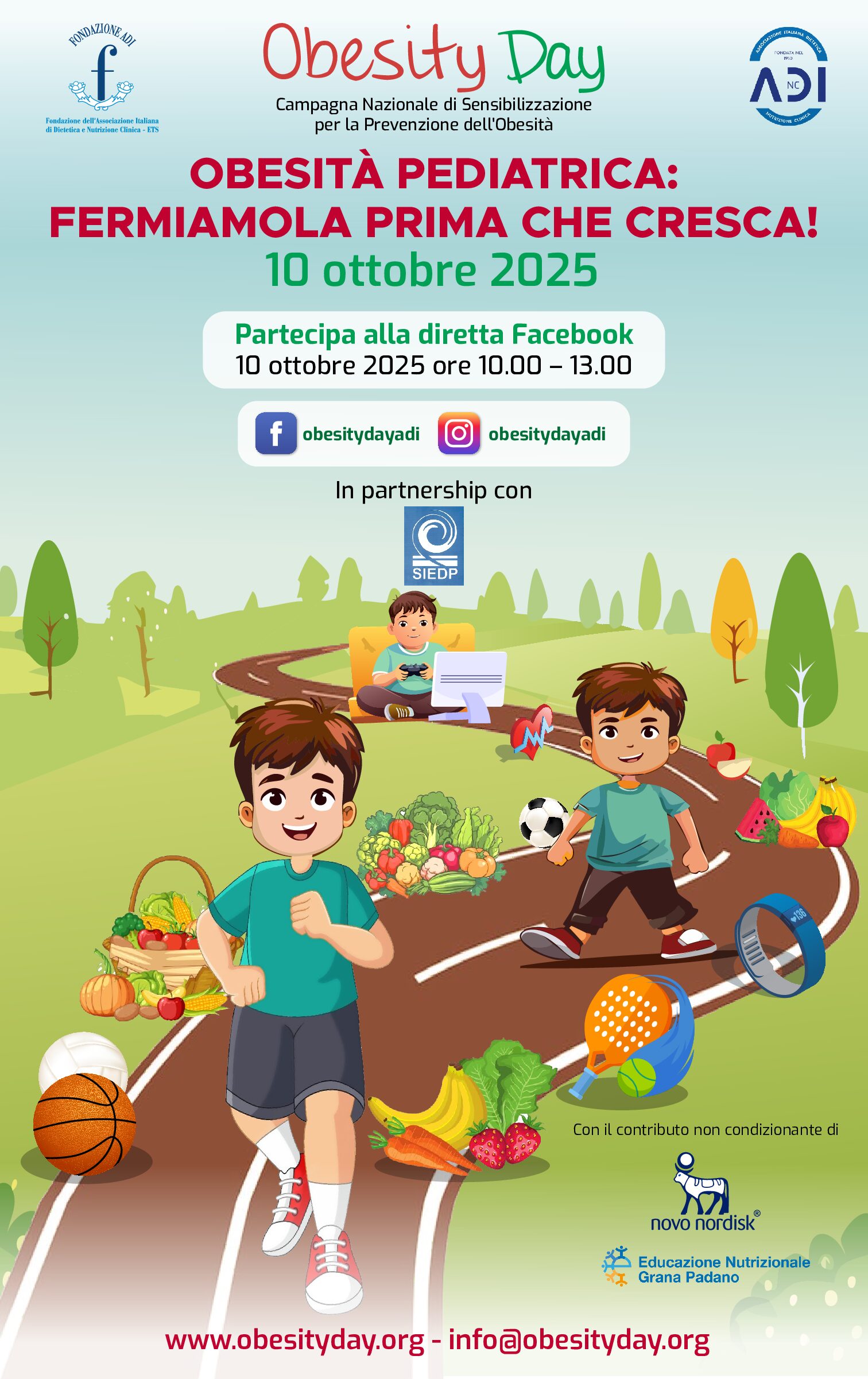 “Obesità Pediatrica: Fermiamola Prima Che Cresca!”, è il motto della Obesity Day promossa per il 10 ottobre 2025 dalla Fondazione ADI in partnership con la Società di Diabetologia ed Endocrinologia Pediatrica, a cui aderisce l’Azienda Sanitaria di Potenza attraverso il Centro DCA Giovanni Gioia di Chiaromonte e il la U.O.C. Servizio Igiene Alimenti e Nutrizione (SIAN) della sede ASP di via Ciccotti a Potenza. Il 10 ottobre 2025 gli operatori del DCA di Chiaromonte dalle ore 9,30 alle 13,00, faranno attività di promozione e cura dell’obesità, così come gli operatori del SIAN dalle ore 9,00 alle ore 13,00 nella sede ASP di via Ciccotti a Potenza.