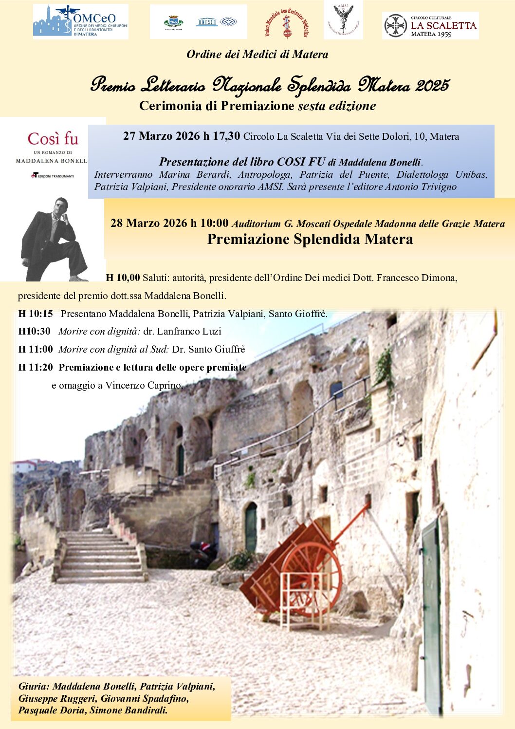 Torna con la sua VI Edizione “Splendida Matera”, il Premio Nazionale di Letteratura promosso dall’Ordine dei Medici Chirurghi e degli Odontoiatri della Provincia di Matera, divenuto negli anni uno degli appuntamenti culturali più apprezzati nel panorama dei medici scrittori italiani.